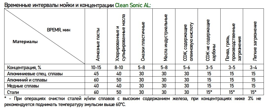 Clean Sonic AL подходит и безопасен в применении на любых металлических и большинстве других поверхностей при температуре до 60°С.